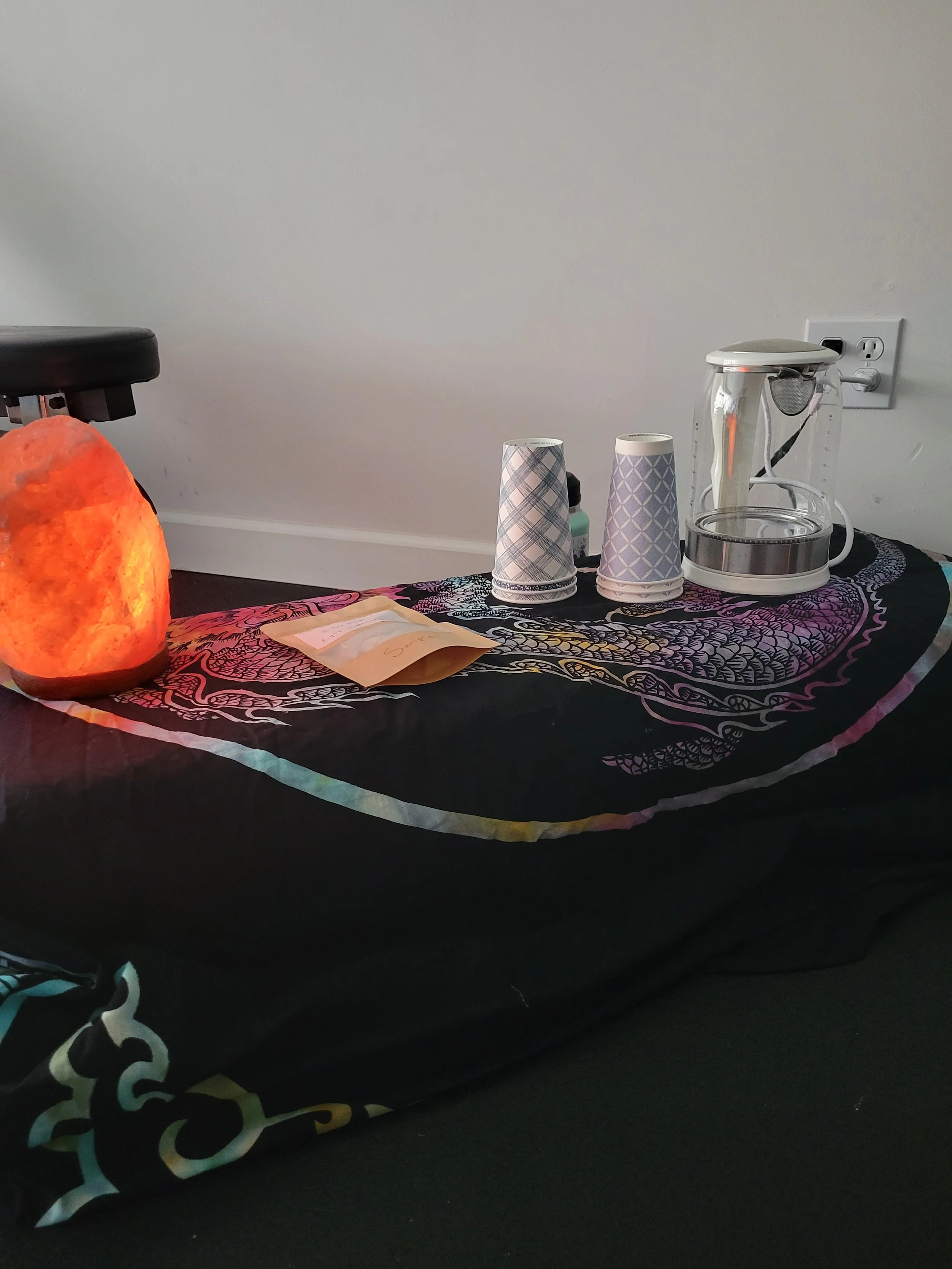 Falina has hand crafted loose leaf tea to share before class begins, provided you aren’t allergic to the ingredients. Falina has crafted 3 very specific tea blends and during each class you have an opportunity to try before you buy if you wish. You are welcome to check out these teas through the online store before class.