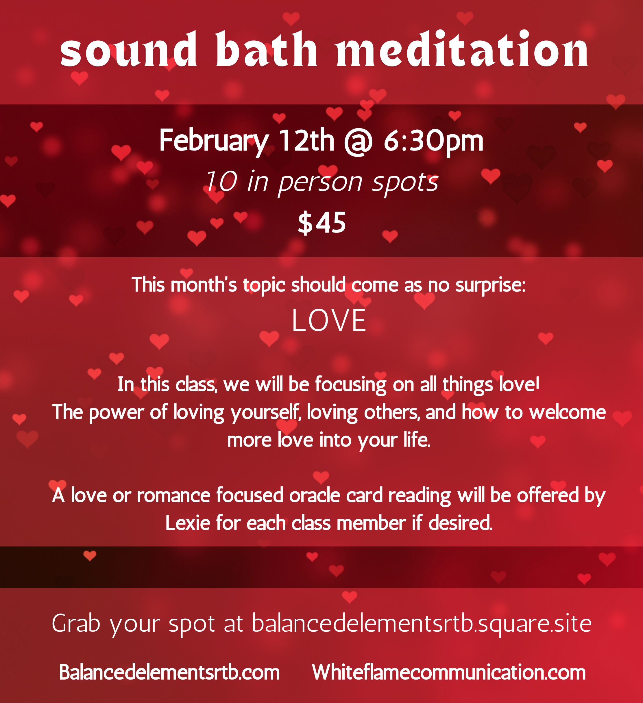 Enjoy a relaxing guided meditation that follows the divinely channeled topic of the month. Lexie guides you through a powerful meditative experience while Falina supports and guides with Tibetan singing bowls and Japanese Temple bells.
